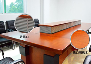 申瑞康設(shè)計的會議室桌面空氣凈化器,外觀造型漂亮,可容納多人同時煙霧吸收,桌內(nèi)機身的風扇能源源不斷將煙霧廢氣空氣抽入,然后通過另一出口的導流片均勻地把被凈化過的空氣散開,這也就是對于桌面空氣凈化器來說最重要的一點。