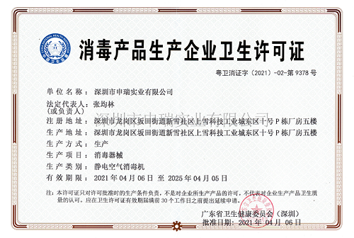 面對疫情防控的嚴(yán)峻形勢,申瑞積極響應(yīng)政府號召和要求,高度關(guān)注疫情進(jìn)展,全力支持抗擊疫情。在國家相關(guān)政策支持下,申瑞嚴(yán)格遵守消毒產(chǎn)品生產(chǎn)企業(yè)的法律要求申請辦理相關(guān)資質(zhì),并于近日獲批廣東省衛(wèi)生健康委員會頒發(fā)的《消毒產(chǎn)品生產(chǎn)企業(yè)衛(wèi)生許可證》,生產(chǎn)類別為靜電空氣消毒機(jī)。